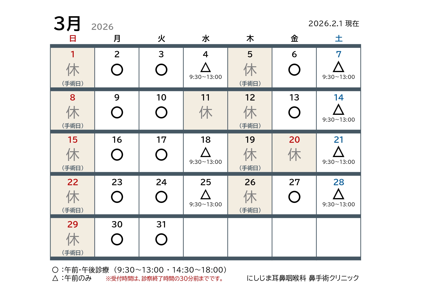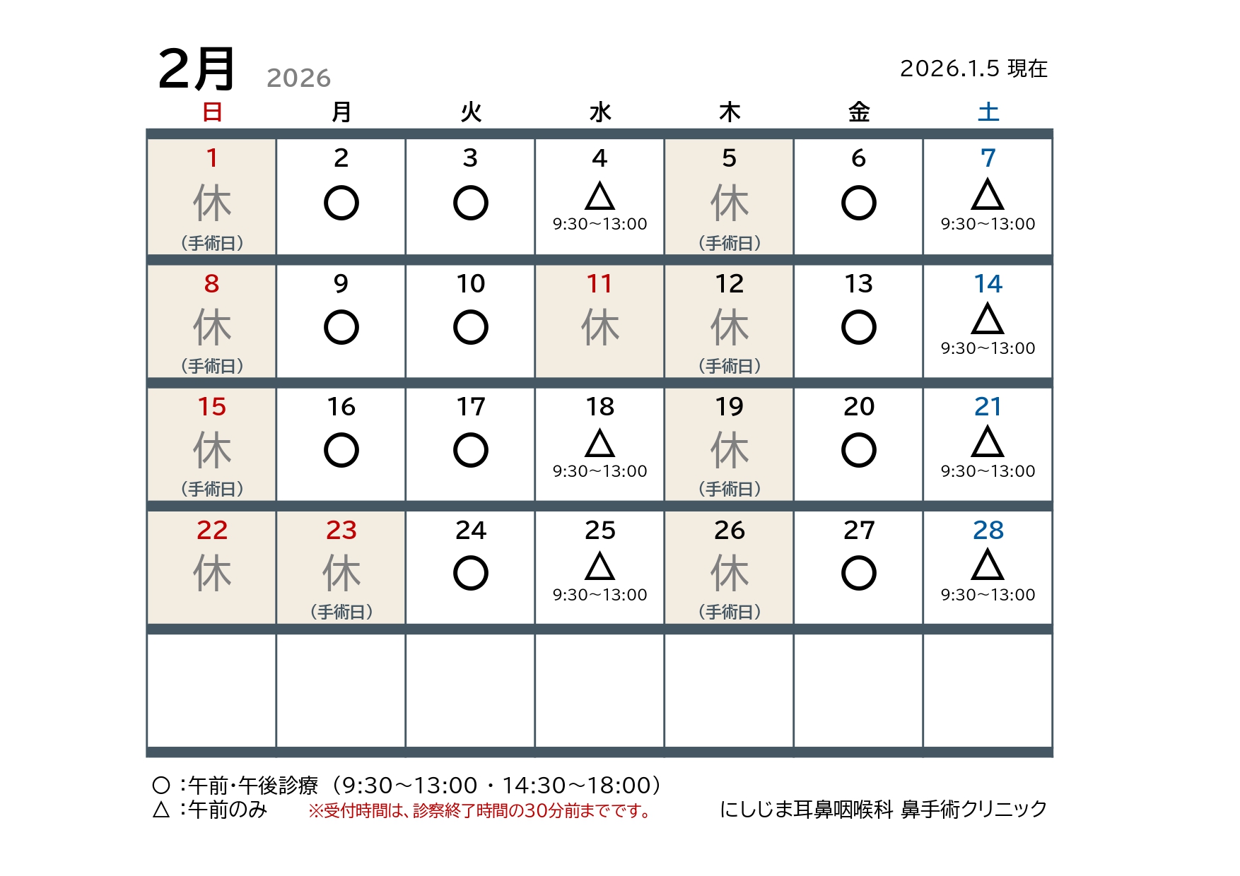 手術のため2月・3月の木曜日は一般外来を休診とさせていただきます。